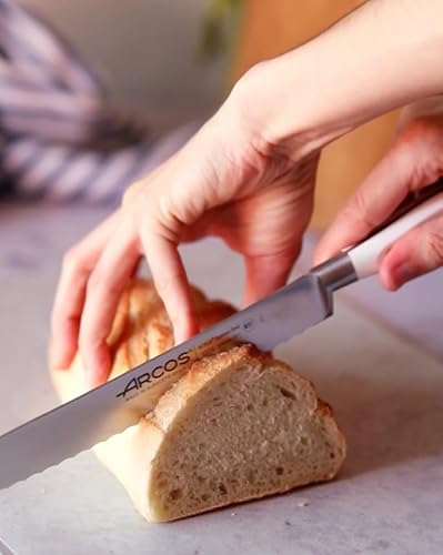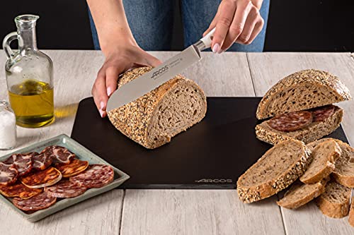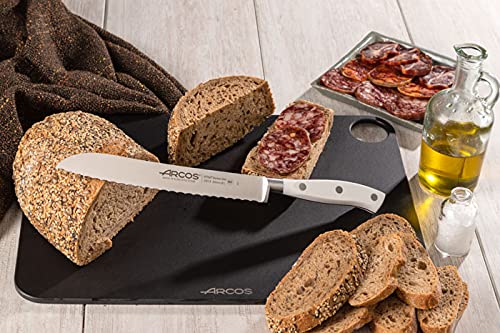 Arcos Cuchillo pan con Hoja Acero Inoxidable Nitrum 200 mm. Obtenga una gran variedad cortesu comida. Cuchillo ideal uso doméstico diario. Serie Riviera Blanc. Color blanco.