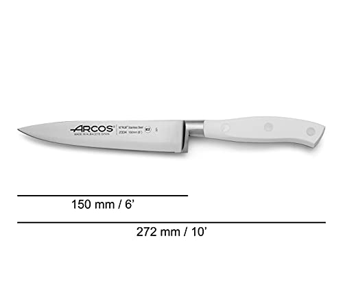 Arcos Cuchillo Chef Forjado Acero Inoxidable. Cuchillo Cocina Profesional Multiusos con Mango Ergonómico Polioximetileno y Hoja 150mm. Serie Riviera Blanc. Color Blanco.