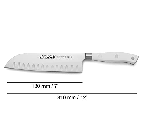 Cuchillo Santoku Arcos Riviera Blanc 233524 de Acero Nitrum, con Mango de Polioximetileno y hoja de 18 cm en estuche