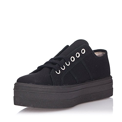 Victoria Zapatillas de lona de mujer negro monocromo con plataforma. (37)
