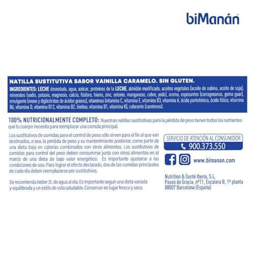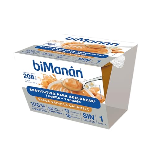 biManán - Copa de Vainilla Caramelo, Crema Sustitutiva de Comidas para Adelgazar, Baja en Calorías, Ayudan a Perder y Controlar el Peso, con Proteínas, Vitaminas y Minerales, Sin Gluten - 210 g