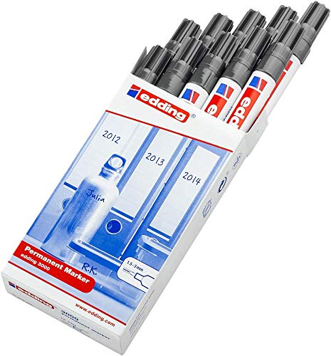 edding 3000 marcador permanente - gris - 10 rotuladores - punta redonda 1,5-3 mm - indeleble de secado rápido - resistente al agua y a los borrones - cartón, plástico, madera, metal, tela - universal