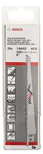 Bosch Professional 25 unidades Hoja de sierra sable S 644 D Top for Wood, para madera, 150 x 19 x 1.25 mm, accesorio de sierra sable