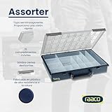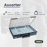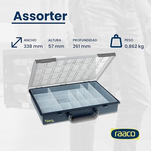 raaco Assorter 55 4x8-15: Caja Organizadora de Tornillos para Taller con 15 Compartimentos Móviles, Caja de Herramientas, Almacenamiento Seguro, Portátil, 26,1 x 33,8 x 5,7 cm