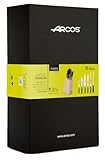 Taco de cinco cuchillos y chaira Arcos Riviera 234200 de acero inoxidable nitrum en madera de haya