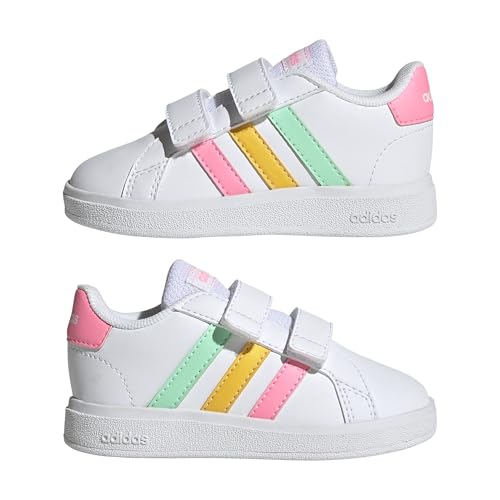 Adidas Unisex bebé Grand Court Lifestyle Hook and Loop Shoes, Cloud White/Pulse Mint/Beam Pink, 22 EU