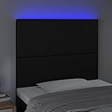 vidaXL Cabecero con Luces LED Cabecero de Cama Cabezal Tapizado para Cama Individual Mueble Dormitorio Interior Cuero Sintético Negro 90x5x118/128 cm