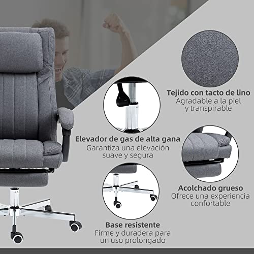 Vinsetto Silla de Masaje con 6 Puntos de Masaje Silla de Oficina Giratoria Silla de Escritorio Reclinable con Altura Ajustable Control Remoto Reposapiés y Reposacabezas Gris