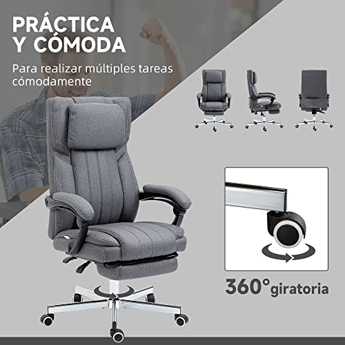 Vinsetto Silla de Masaje Silla Ergonomica de Oficina Reclinable Giratoria con 6 Puntos Vibratorio Control Remoto Gris Aosom España