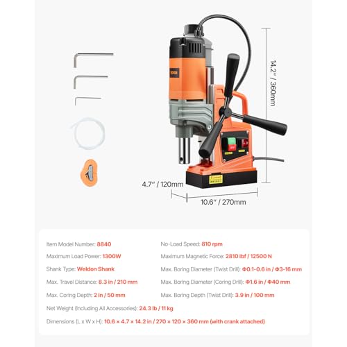 VEVOR Taladro de Núcleo Magnético 1300W Taladro Magnético Portátil 810RPM 13000N