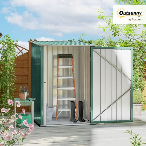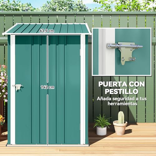 Outsunny Cobertizo de jardín 0,92 m² 100x103x160 cm caseta de jardín metálica con 1 puerta y cerradura para almacenamiento de herramientas verde