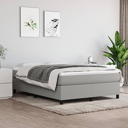 vidaXL Estructura de Cama con Somier, Somier de Matrimonio de Listones, Base de Cama Tapizada, Mueble para Dormitorio Hogar, Tela Gris Oscuro 140x200 cm
