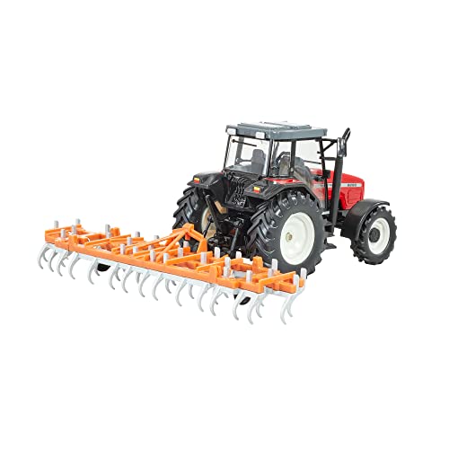 Britians Hertitage Tractor Playset de Juguete, Tractor Massey Ferguson 6S.180 con cultivador Plegable clásico, Compatible con Juguetes de Granja a Escala 1:32, Adecuado para coleccionistas y niños a