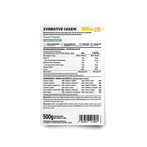 HSN Caseína Micelar Nativa Evonative Casein (87% de Micelas Nativas) | Tarta de Queso y Limón 500g | Lacprodan® MicelPure™ de Arla | No Incluye Dosificador | No-GMO, Vegetariano, Sin Gluten