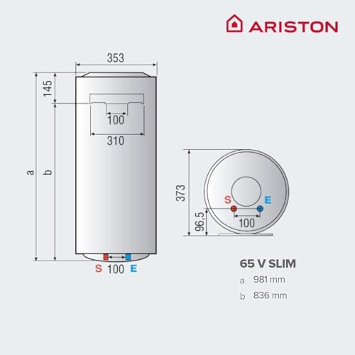 Ariston Pro1 Eco Slim - Termo Eléctrico 65 Litros Bajo Consumo Vertical, Calentador de Agua Eléctrico con Función ECO 37,3x35,3x98,1 cm, Fabricado para Instalación en España, Eficiencia B Rango (A+/F)