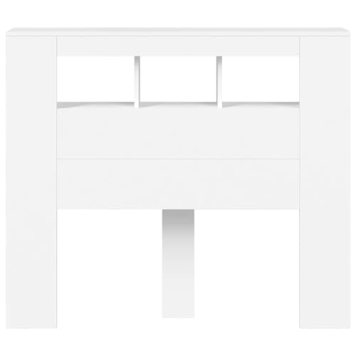 vidaXL Cabecero con LED, Cabecera con Almacenaje, Cabezal de Cama, Cabecero para Dormitorio, Madera de Ingeniería Blanco 120x18,5x103,5 cm