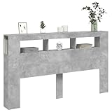 vidaXL Cabecero con LED, Cabezal de Almacenaje, Cabecero para Cama, Cabecero Estantes Dormitorio, Madera de Ingeniería Gris Hormigón 180x18,5x103,5 cm