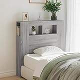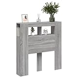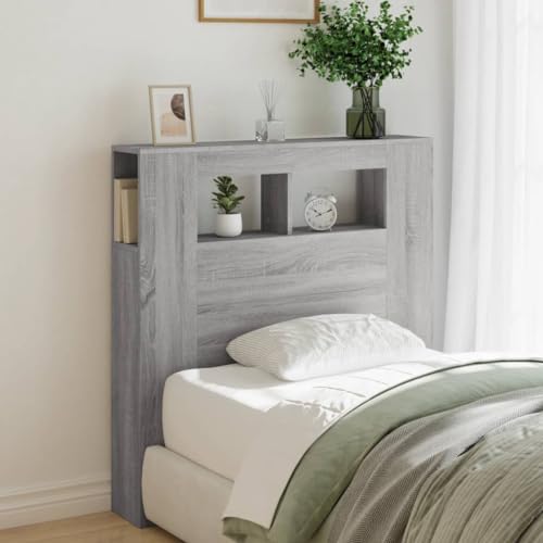vidaXL Cabecero LED, Cabecera con Almacenaje, Cabezal de Cama, Cabecero para Dormitorio, Madera de Ingeniería Gris Sonoma 100x18,5x103,5 cm