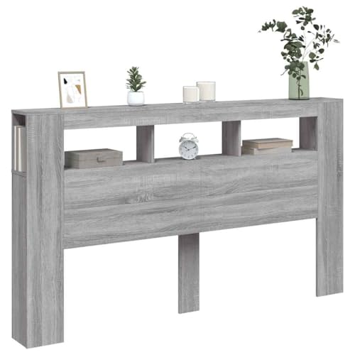 vidaXL Cabecero con LED, Cabezal de Almacenaje, Cabecero para Cama, Cabecero Estantes Dormitorio, Madera de Ingeniería Gris Sonoma 180x18,5x103,5 cm