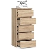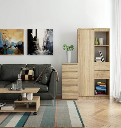 AKORD | Cómoda con 5 cajones | Cómoda Alta | Mueble Moderno para Sala de Estar, Comedor, Dormitorio, Entrada, baño | Armario para habitación Infantil | 35x40x92 cm | Roble Sonoma