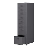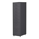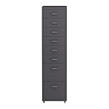 [en.casa] Archivador Móvil Kökar Organizador de Oficina con 6+2 Cajones Portaetiquetas Gabinete de Archivos con Ruedas para Despacho Taller 109 x 28 x 41 cm Acero - Gris Oscuro