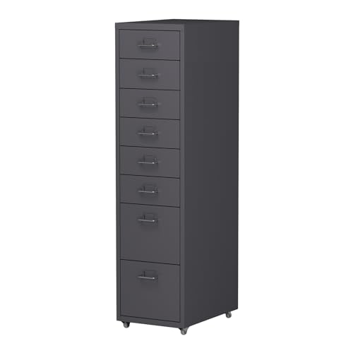[en.casa] - Archivador móvil Kökar con 8 cajones 109x28x41 cm acero - Gris oscuro