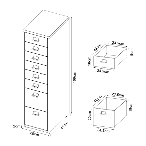 Archivador móvil kökar con 8 cajones 109x28x41 cm acero - gris oscuro [en.casa]