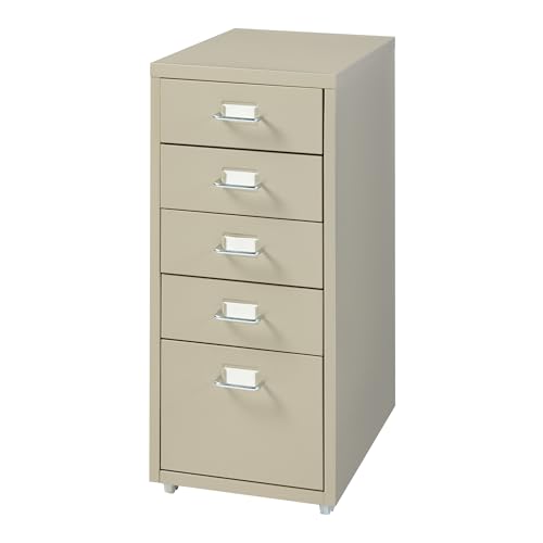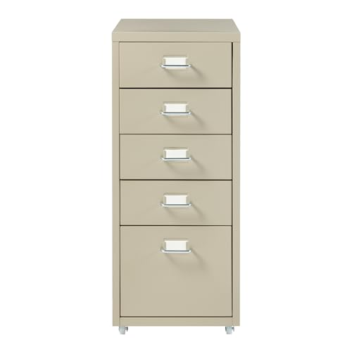 [en.casa] Archivador Móvil Kökar Organizador de Oficina con 5 Cajones Portaetiquetas Gabinete de Archivos con Ruedas para Despacho Taller 69 x 28 x 41 cm Acero - Color Camello
