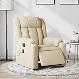 vidaXL Sillón Reclinable de Masaje Eléctrico, Silla con Respaldo, Sillón Orejero Ajustable, Asiento para Personas Mayores, Tela Color Crema