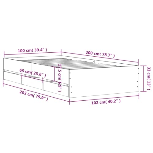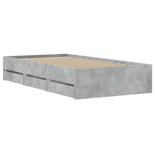 vidaXL Cama con Cajones, Somier de Listones, Armazón Base de Cama, Mueble para Dormitorio, Madera de Ingeniería Gris Hormigón 100x200 cm