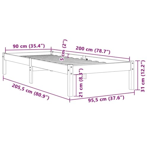 vidaXL Estructura de Cama, Somier de Listones de Invitados, Armazón de Cama, Mueble para Dormitorio, Madera Maciza de Pino Marrón Cera 90x200 cm
