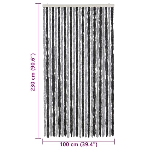 vidaXL Cortina Antimoscas, Cortina de Insectos para Puerta, Persiana de Moscas, Cortina de Puerta para Mosquitos Insectos, Chenilla Gris y Negro