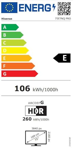 Hisense 75E7NQ Pro - QLED Gaming TV, 75 Pulgadas Televisor, VRR 144Hz HSR 240 fps, AMD Freesync Premium Pro, Barra de Juegos, Solución HDR Total, Dolby Vision IQ & Dolby Atmos (Nuevo 2024)