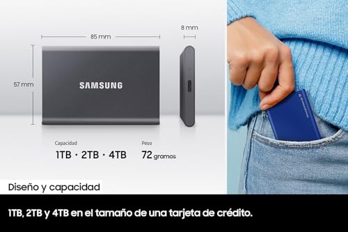 Samsung Disco externo SSD portátil T7 4TB, USB 3.2. Gris