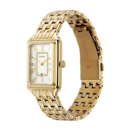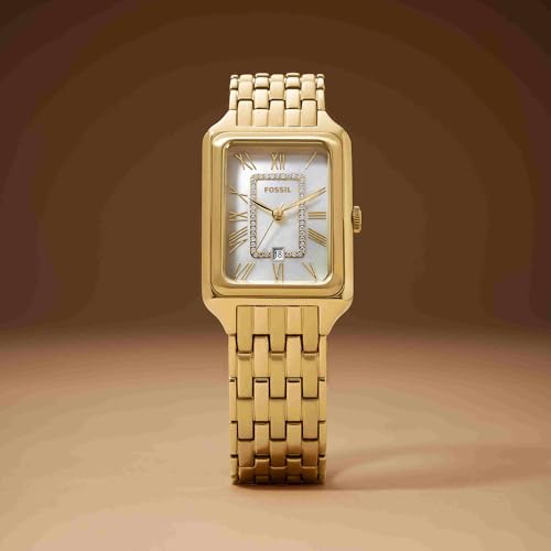 Fossil Reloj Raquel para Mujer, Movimiento de Cuarzo de Tres Agujas con Correa de Acero Inoxidable, Tono Oro y Blanco Perla, 26 mm