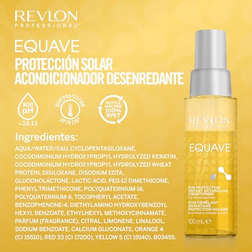 REVLON PROFESSIONAL EQUAVE Acondicionador Profesional bifásico desenredante para cabellos expuestos al sol, Protección UV para el cabello, acondicionador sin aclarado, 100ml