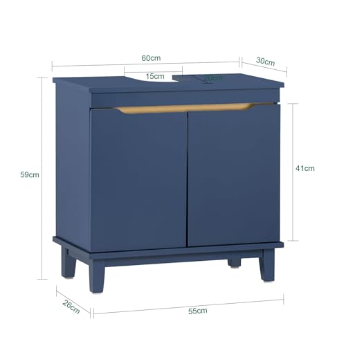 Mueble para Debajo del Lavabo Fregadero Armario de Baño Armario de Almacenaje de Suelo 2 Puertas Azul 60 x 30 x 59 cm BZR113-B SoBuy ES