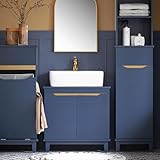 SoBuy Mueble Bajo para Lavabo – Armario de Baño con Puertas – Mueble Bajo para Lavabo, Muebles de baño Estrecho de Madera para Espacios Pequeños, Azul, 60 x 59 x 30 cm, BZR113-B
