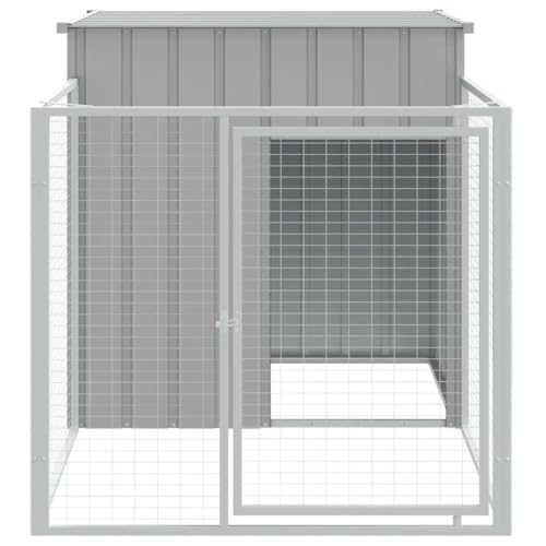 vidaXL Caseta para Perros, Perrera con Tejado Puerta, Casa para Animales, Jaula para Jardín Patio, Acero Galvanizado Gris Claro 110x201x110 cm