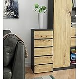 AKORD | Cómoda con 5 cajones | Cómoda alta | Mueble moderno para sala de estar, comedor, dormitorio, entrada baño | Armario para habitación infantil | 35x40x92 cm | Gris Grafito & Roble Artisan Frente