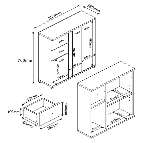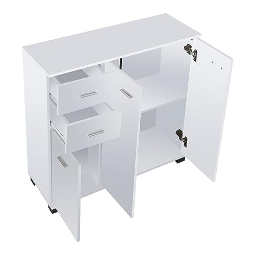 [en.casa] - Aparador Crimla con 2 cajones 3 puertas 76x80x28 cm - Blanco