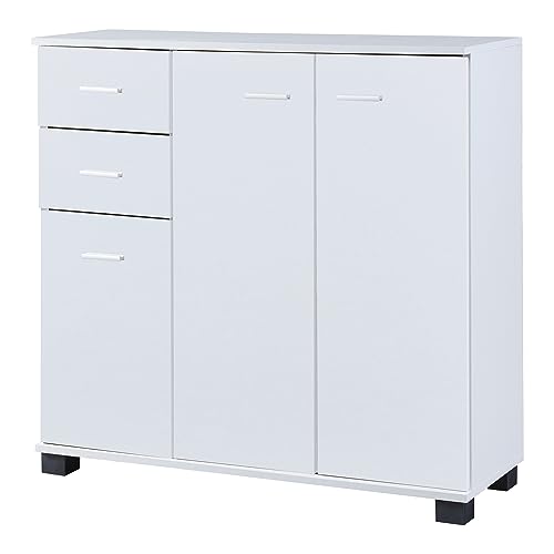[en.casa] Aparador Crimla con 3 Puertas Mueble Zapatero con 2 Cajones y 1 Estante Interno Regulable en Altura para 5 Pares de Calzados Aglomerado 76 x 80 x 28 cm - Blanco