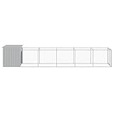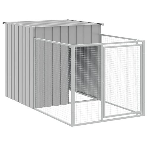 vidaXL Caseta para Perros con Corral, Jaula para Perros, Casa de Mascotas, Perrera Exterior Corral de Malla, Acero Galvanizado Gris Claro