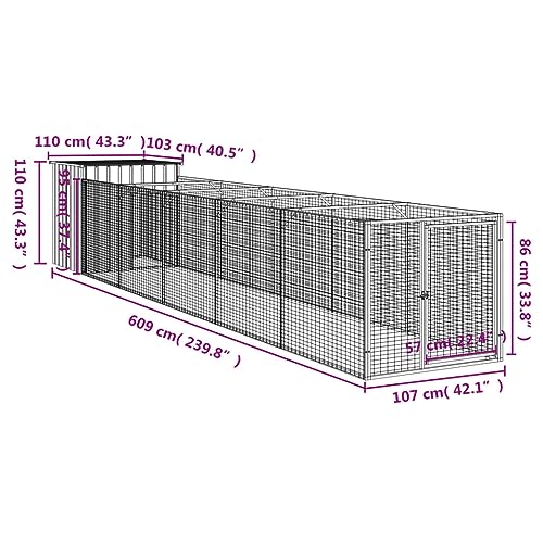 Vidaxl caseta perros corral acero galvanizado gris claro 110x609x110cm