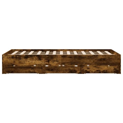 vidaXL Cama con Cajones, Somier de Listones, Armazón Base de Cama, Mueble para Dormitorio, Madera de Ingeniería Roble Ahumado 140x200 cm
