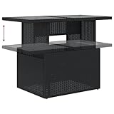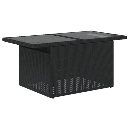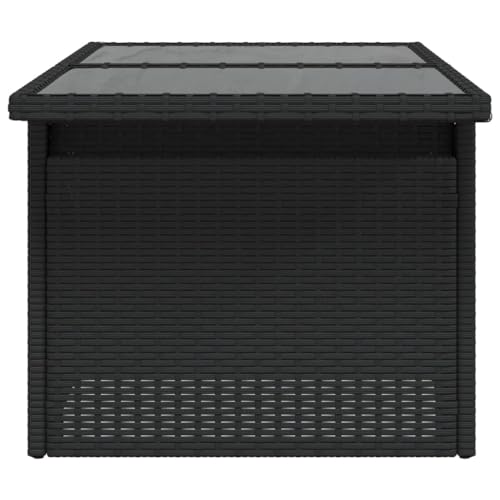 vidaXL Mesa de Jardín Superficie de Vidrio, Mesita de Centro Comedor, Mueble Auxiliar, Decoración para Patio Terraza, Ratán PE Negro