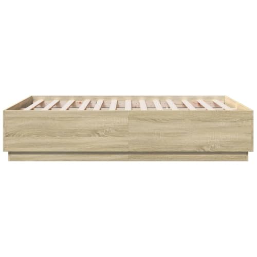 vidaXL Estructura de Cama con Luces LED, Somier de Invitados, Armazón de Cama, Mueble para Dormitorio, Madera Roble Sonoma 120x190 cm