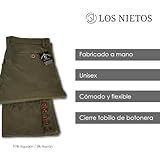Pantalón Montero Unisex de Guarnicionería Los Nietos Fabricación: Hecho en Priego de Córdoba, España. Características: Cierre de botonera en el tobillo, con posibilidad de cambiar por caireles al gusto. Cómodo y flexible. Composición: 97% Algodón / 3% Elastán. Colores Disponibles: Gris plomo Gris Gris azulado Azul marino Azulina Camel Beig Verde militar Marrón Marrón oscuro Tallas Adulto: 36, 38, 40, 42, 44, 46, 48, 50, 52, 54, 56, 58, 60, 62. Recomendación: Elija una talla más grande que la que usa normalm