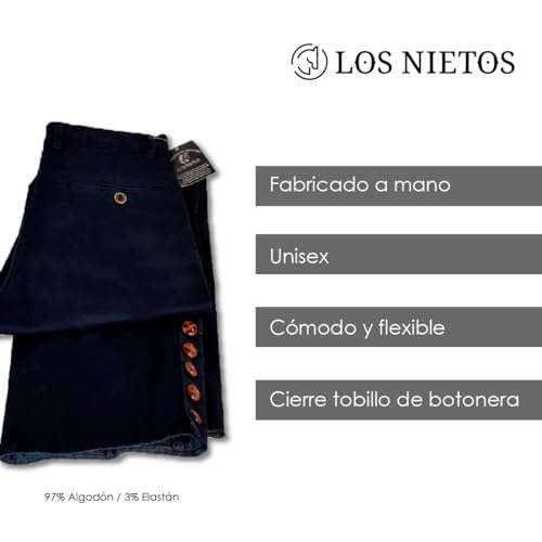 Pantalón montero unisex fabricado en Priego de Córdoba Descripción: Pantalón montero unisex, hecho en Priego de Córdoba, España. Cierre de botonera en el tobillo, con posibilidad de cambiar por caireles al gusto. Cómodo y flexible. Composición: 97% Algodón / 3% Elastán Colores disponibles: Gris plomo, gris, gris azulado, azul marino, azulina, camel, beig, verde militar, marrón, marrón oscuro. Tallas para adulto: 36, 38, 40, 42, 44, 46, 48, 50, 52, 54, 56, 58, 60, 62. Recomendación: ELIJA UNA TALLA MÁS GRAND