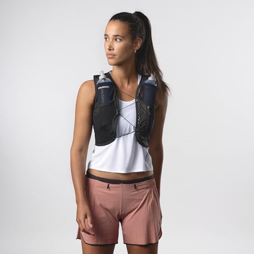 Salomon Active Skin 4 Chaleco de Hidratación Trail Running Senderismo Trail Running Senderismo MTBcon frascos de hidratación incluidos, Diseño para Mujer, Hidratación Sencilla, Negro, M